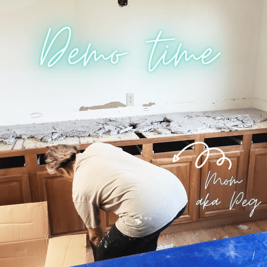 We had a blast! I really hated the countertop, it looked like it had pink in it and honestly combined with the yellow/orange tones of the cabinets it was a hot mess. Also, swinging a sledgehammer is totally therapeutic and a good workout.