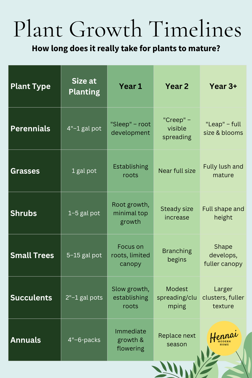 Most people haven’t been taught how long it takes for plants to reach their mature size. Or that crowding them now means stunting their growth later. The truth is, when you overplant for that “full” look right away, you’re almost guaranteed to be digging things up or cutting them back within a year or two. It’s expensive, exhausting, and totally avoidable.
