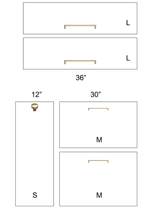This was pretty annoying, to be honest. The general rule is that a handle or pull should be 1/3 of the width of the drawer or cabinet. I listed all of the measurements and then labeled them as S, M, L to help me just visualize a bit more. I still wasn’t happy with how to translate this into an online order so I made a spreadsheet. I love spreadsheets and I don’t care if you think I made this more difficult than it had to be.