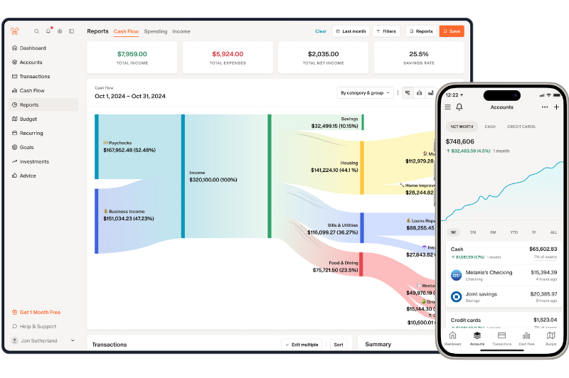 If you’re in a relationship, money can get messy—because let’s be real, you were raised differently and probably don’t see money the same way. That’s normal. But it also means you need a full picture of what’s coming in and going out. Pull your separate and joint accounts into one view so you actually know how you spend as a household—no matter who’s swiping the card. You can tag your partner to review transactions (because “what did you buy at Costco?” doesn’t need to be a weekly fight), and the monthly summary makes check-ins quick instead of painful. The point isn’t to nickel-and-dime each other, it’s to create a budget that actually supports both of you and leaves room for the things you each care about.
